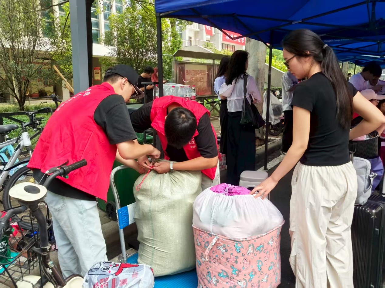 从学校大门到宿舍的这段路程,因为有了学长学姐们的热心帮助,变得不再漫长与艰难。他们不辞辛劳,一趟趟帮忙搬运行李,耐心细致地解答新生们的各种疑问,用自己的爱心与奉献,为2025级的萌新们开启了一段充满期待与美好的大学之旅。校园里,身着志愿者服装的身影穿梭其中,构成了一道亮丽而温暖的风景线。