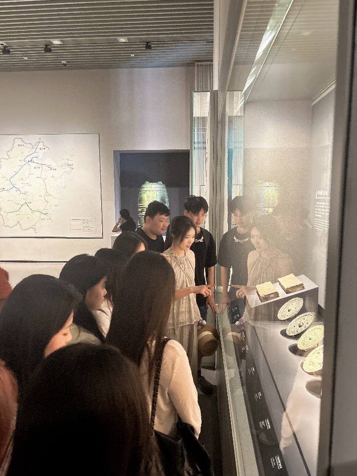 在南京博物馆,师生重点研习馆藏文物衍生文创产品开发案例,直观领悟专业实践路径;杭州行中,团队深入自然造物民艺研究中心及中国美术学院,通过非遗文创专题讲座与"靳埭强创意六十年展""乡村手工艺振兴案例展"观摩,系统掌握传统手工艺创新转化方法,提升传统文化元素现代设计应用能力。